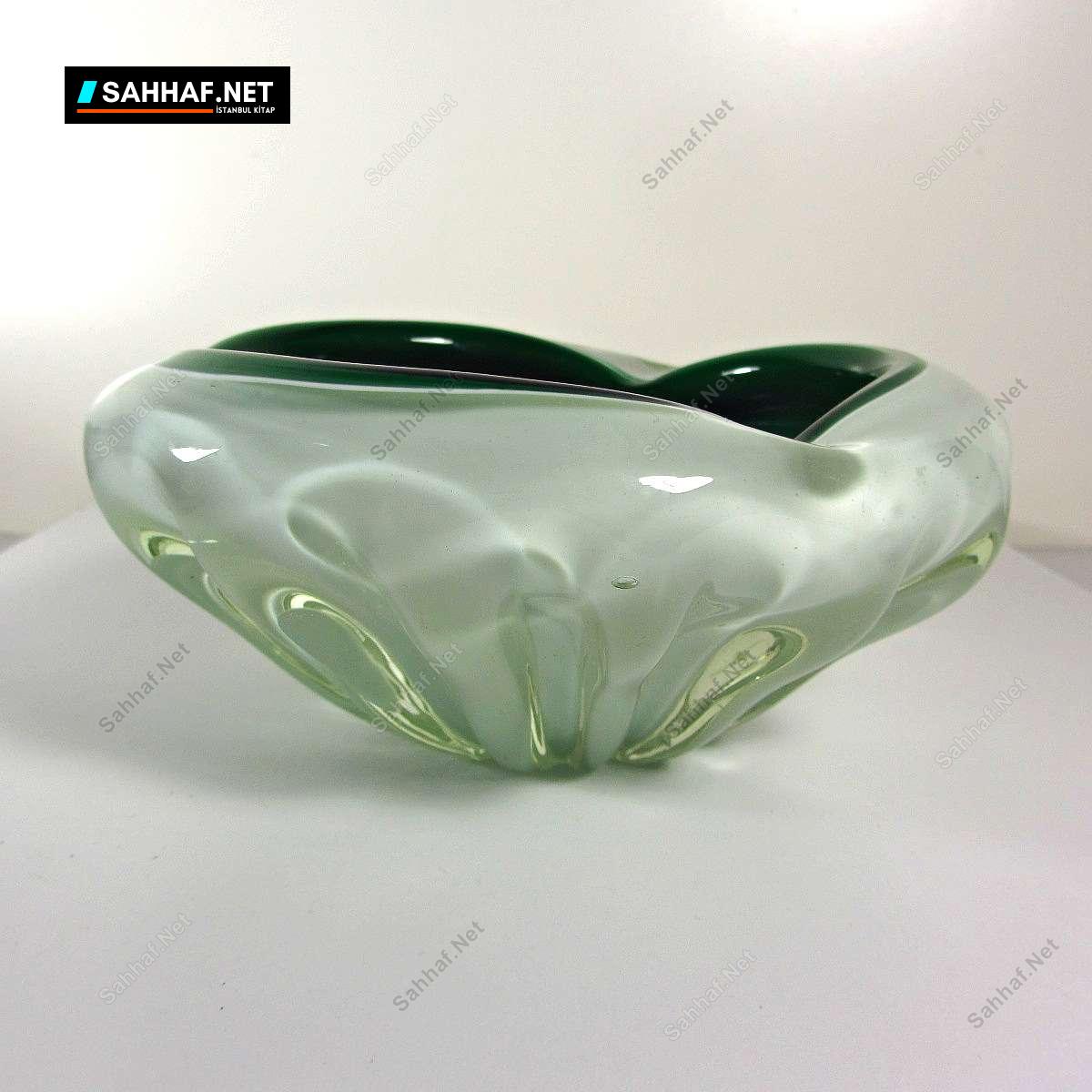Murano üretimi (İtalya) harika bir kül tablası. Orta boy, harika bir işçilik ve görselliğe sahip vintage bir ürün, içi opak beyaz olmasına rağmen dışı şeffaf, içinde ise açıktan koyuya uzanan çok tatlı bir yeşil kullanılmış. Olağanüstü bir güzelliğe sahip. Üst genişliği: 16 cm, Yyükseklik: 7 cm. Tek ya da çift olarak satın alabilirsiniz.